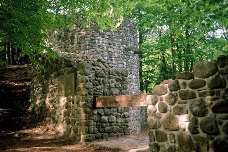 Die einstige Burg der Herren von Hünenberg thront auf einem gratförmigen Schottersporn hoch über dem Zusammenfluss von Lorze und Schwarzenbach. Sie kontrollierte im 13. und 14. Jh. die wichtige Verkehrsroute von Menzingen nach Zug. Rundturm und Umfassungsmauern künden noch von einstiger Größe.