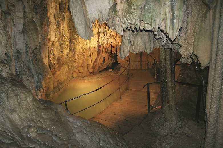 Die im Laufe von Jahrmillionen durch kalkhaltige Quellen geformten Tropfsteinhöhlen zeigen Stalagmiten und Stalaktiten in fantastischen Formen und Farben. Geologen schätzen das Alter der vielfältigen Sintergebilde auf 15.000 bis 20.000 Jahre. Die Besichtigung der Höhlen dauert rund 45 Minuten.