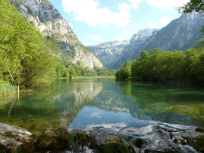 Bei dieser gemütlichen Wanderung von Brunntal (623 m) bis Brunnboden (828 m) in der Hochschwab Gruppe im Herzen der Steiermark faszinieren vor allem die bizarren Wände der umliegenden Berge. Unterwegs bieten sich imposante Einblicke ins Hochschwab Massiv und man ist überwältigt, von einer einzigartig schönen Landschaftsform im Gebiet Wildalpen. Der gesamte See im Quellschutzgebiet ist übrigens ein rießiges Quellbecken.