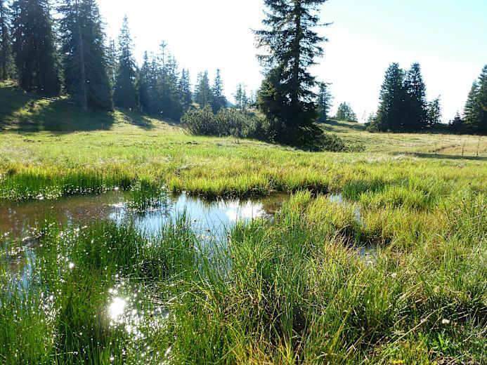 Die Straße bis nach Hinterwildalpen ca. 6 km fahren, vorbei an Gasthaus Zum Krug, gleich danach rechts abbiegen und nach 1,1 km startet der Wanderweg der Strasse folgend.