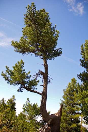 Zirben oder Zirbelkiefern können bis zu 1000 Jahre alt werden. Ihr aromatisch duftendes Holz wird häufig als Möbelholz verwendet. Aus den Zapfen wird der beliebte Zirbenlikör und -schnaps gefertigt.