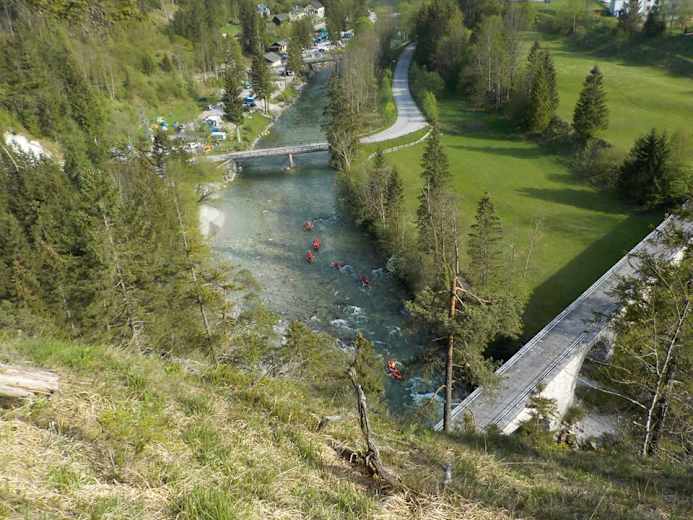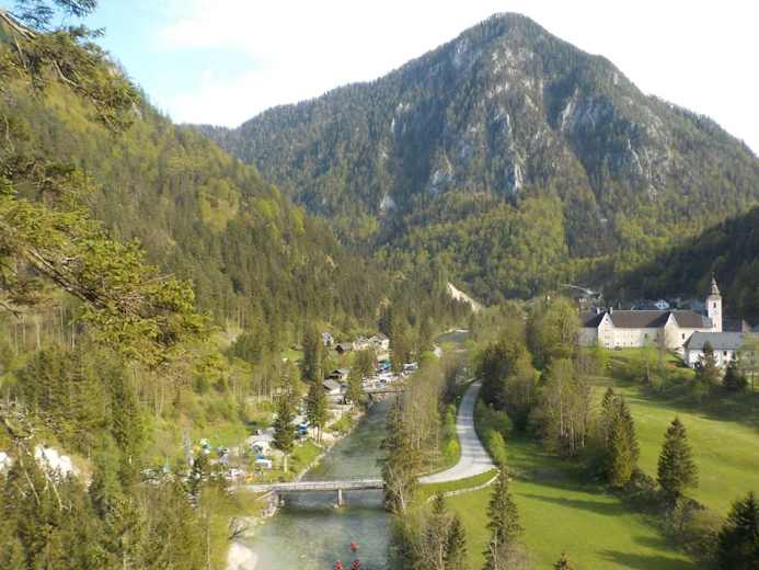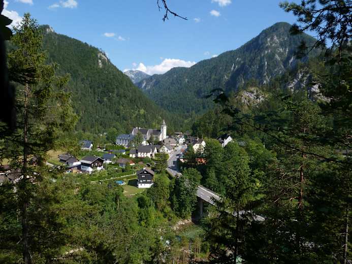 Der Abstieg vom Häuselkogel führt etwas steiler hinab bis zur Straßenverwaltung in Wildalpen. Über die Salzabrücke führt der Weg wieder zurück zur Barbarakirche oder zum Café Restaurant Grabner oder zum Hotel Bergkristall.