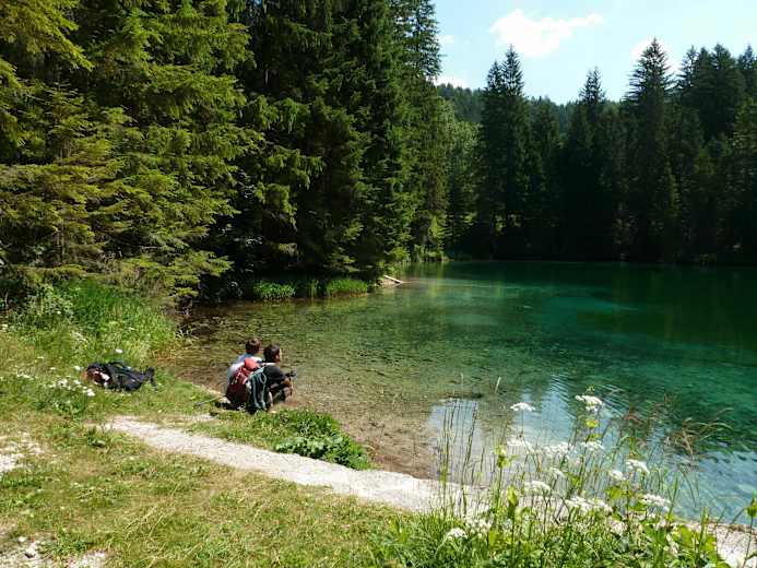 Hier angelangt geht es zuerst auf Schotter- und später auf einer Asphaltstraße noch ein Stück höher hinauf. An einer Wegkreuzung verlässt man die Asphaltstraße wieder nach rechts und geht auf der Forststrasse weiter fasst bis zur Schiliftanlage. Über die Piste geht es zurück ins Tal zum Parkplatz. Von oben kommend, marschiert man links auf der Forststraße weiter, die bis zur Poschenhöh führt.