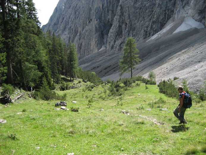 Fordernde, aber aussichtsreiche Wanderung im Karwendel in Tirol: Vom Parkplatz Halltal-Eingang geht die interessante Route über das Halltal und die Bettelwurfhütte (2.097 m) zum Lafatscherjoch. Die meiste Zeit über hat man eine grandiose Aussicht auf das Inntal und die südlich davon gelegnenen Tuxer Alpen.