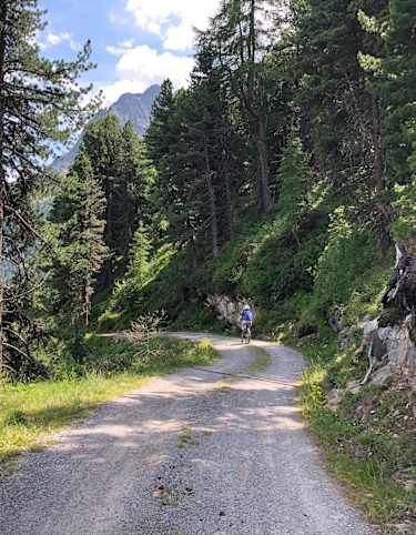 Entlang der alten Bobtrasse geht es aufwärts bis zu einer Forststraße, der man ein Stück folgt, ehe man sie zu Gunsten eines Fußweges links verlässt. Abwechseln auf dem Fußweg und dann wieder mal ein Stück auf der Forststraße geht es stetig aufwärts bis zur Tonihütte bzw. Riesserkopfhütte.