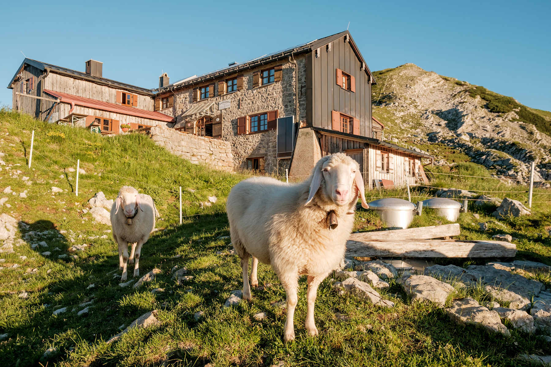 Neugierige Bewohner: Die hauseigenen Schafe beschnuppern Besucher. Foto: Hans Herbig, Bergwelten 02/2018