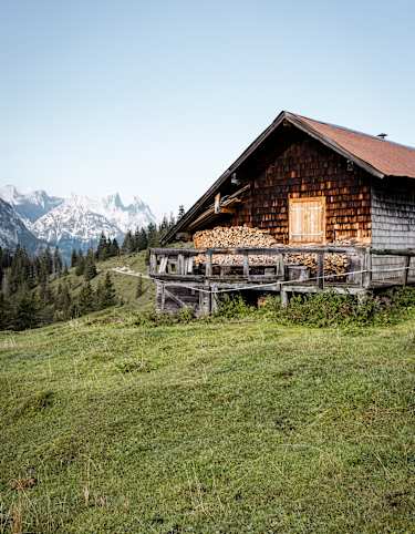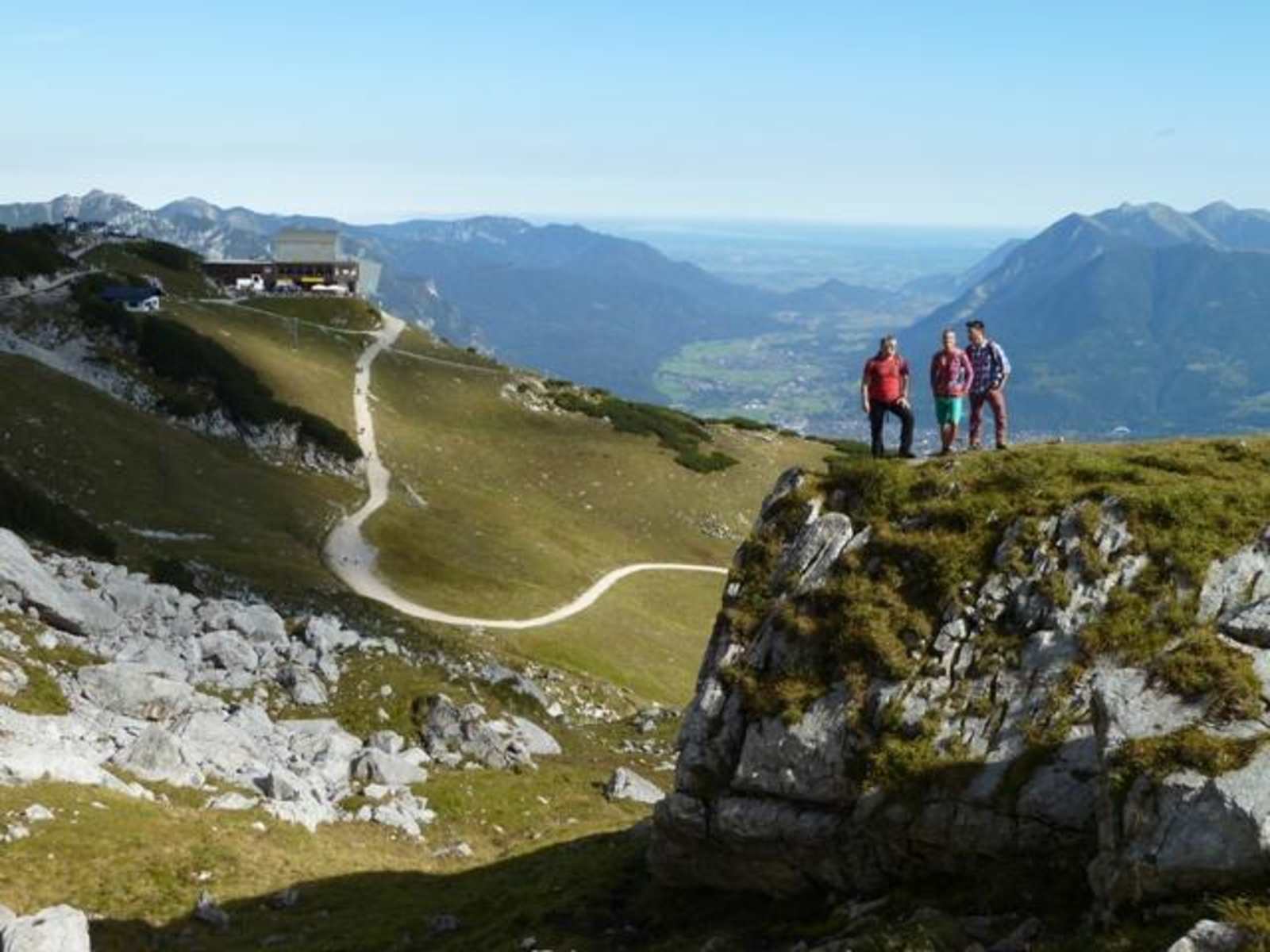 Nachdem man zum Osterfeldkopf aufgestiegen ist, kann man auf der Terrasse der Bergstation beim Restaurant Alpspitze eine gemütliche Brotzeit genießen, die vor der faszinierden Berkulisse der Alpspitznordwand, noch viel besser mundet.