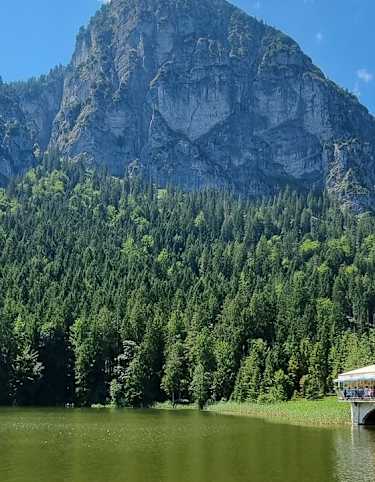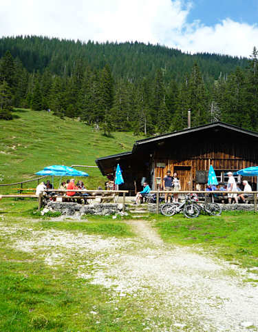 Gemütliche Einkehr bietet der Berggasthof Pflegersee und wenn man möchte, kann man hier ein erfrischendes Bad im See nehmen.