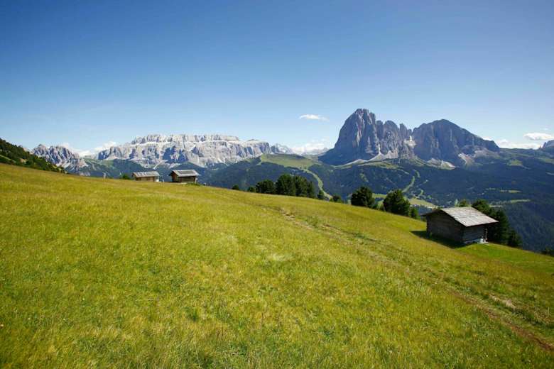 Wer gerade seinen Urlaub im Grödner Tal begonnen hat und erstmal in Ruhe die Gegend erkunden will, der ist auf der Wanderung zu den Sëurasas Almen genau richtig. Die Südhänge zwischen St. Ulrich und St. Christina sind abseits des ansonsten lifterschlossenen Grödnertals und geben den Blick frei auf einen der großen Gipfel der Dolomiten: den Langkofel. Mit kanpp 950 Höhenmetern ist die Wanderung zu den Sëurasas Almen eine wunderbare Einstiegstour für einen bergintensiven Aufenthalt im Grödnertal.