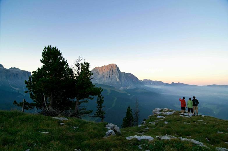 Die Rundtour startet am Daunei Parkplatz oberhalb von Wolkenstein im Grödnertal. Vom Parkplatz geht man kurz auf dem Weg zur Juachütte, folgt jedoch dann dem Weg 3 nach rechts zum Weg Nr. 17a, dem Troi Palota.