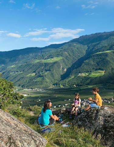 Eine beliebte, mittellange und aussichtsreiche Höhenrundwanderung am Latscher Sonnenberg für alle, denen die kleine Dolomitenblick-Runde zu kurz ist. In etwa 2 Stunden Gehzeit, in der man etwa 450 Höhenmeter überwindet, erreicht man in einer Höhe von 1.950 m den „Dolomitenblick”, den Aussichtspunkt inmitten einer Wiese mit Bänken und Wiesen.