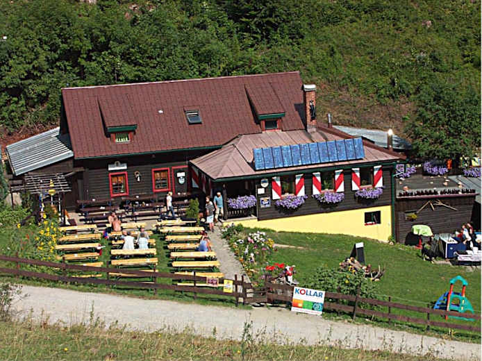 Auf idyllischen Waldwegen geht es dann zur Schneerosenwarte und weiter bergab zum Schrambacherberg nach Schrambach. Weiter geht es neben dem Traisenfluss nach Stangental, über die Brücke Richtung Krankenhaus ins „Stille Tal“. Ab da ändert sich die Markierung von Rot auf Gelb. Stark ansteigend geht es dann hinauf zur Glatzwiese, über den Jägersteig zur Lilienfelder Hütte (Gschwendt) und über den Almboden zur Klosteralpe (1.067 m). Steil bergauf marschiert man nun über den Schwarzwaldriegel zur Traisner Hütte auf die Hinteralpe (1.311 m).