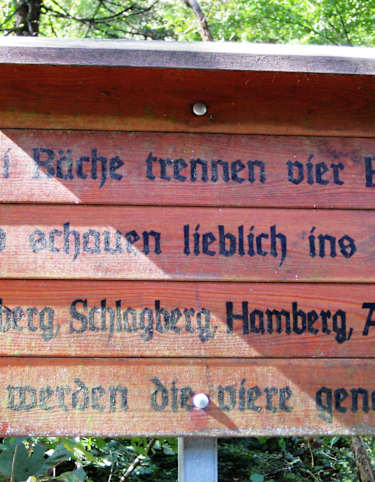 Danach führt der Rückweg zurück zur Weggabelung. Der Asphaltstraße talwärts folgend, geht es vorbei an den Bauernhäusern Kleinschöntal und Grub bis zur nächsten Kreuzung. Links haltend, biegt man nach etwa 250 m auf der Asphaltstraße links auf einen Feldweg ab. Am Waldrand entlang wandernd kommt man zum Bauernhaus Obereck (825 m). Der Rundwanderweg führt auf der Asphaltstraße bergab zum Trafohäuschen und links haltend am Gehöft Hintereck vorbei. Die Straße führt bergab in eine Senke, in der es nach einer Brücke wieder bergauf bis zum Hof Riesen geht. Über einen Wirtschaftsweg und einen kurzen Wiesenweg, der den Wirtschaftsweg mit einer anderen Schotterstraße verbindet, gelangt man zum Anwesen Seisen.