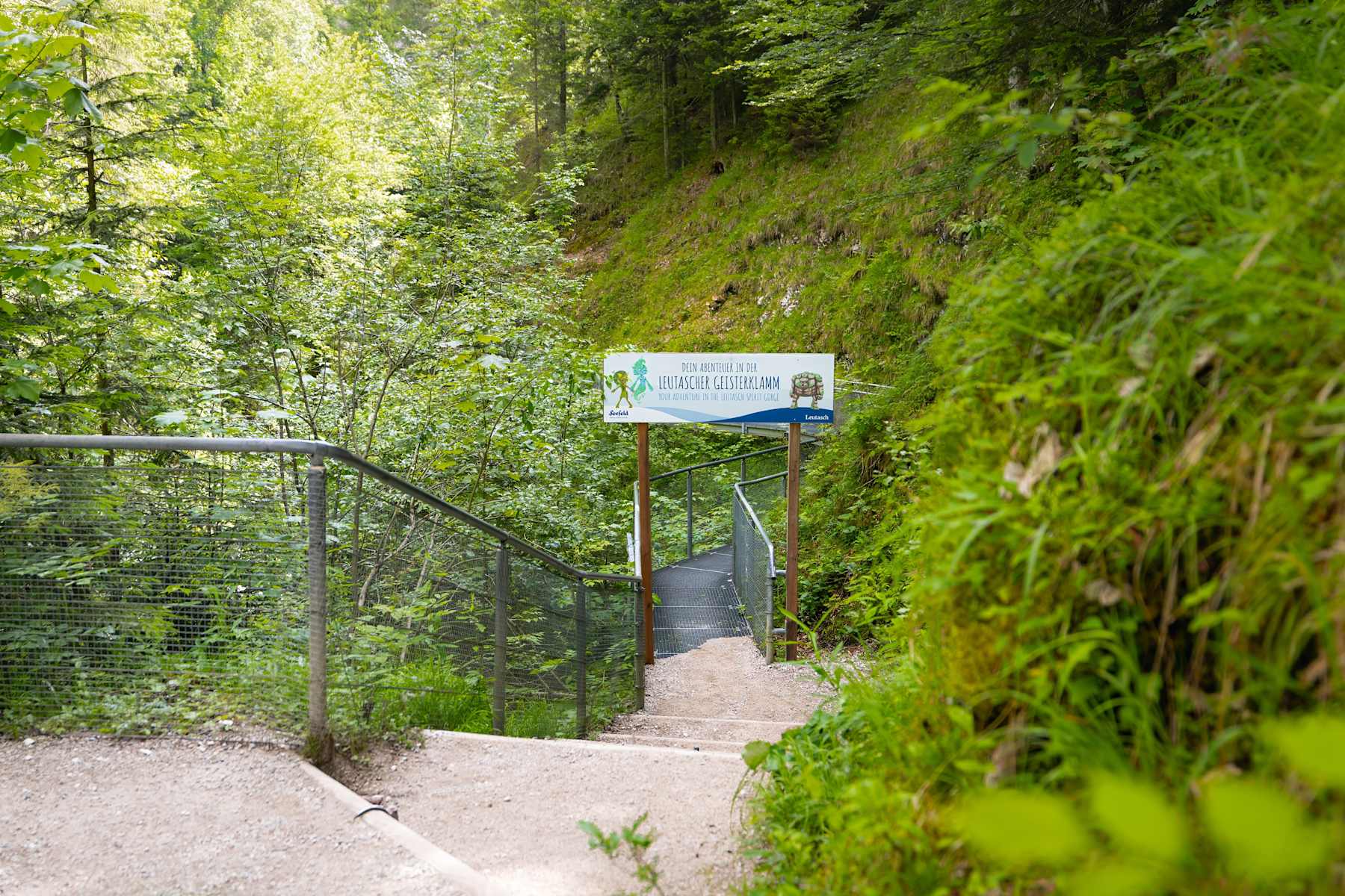Bitte beachten, dass die Wanderung durch die Geisterklamm nicht für Kinderwagen und Hunde geeignet ist.