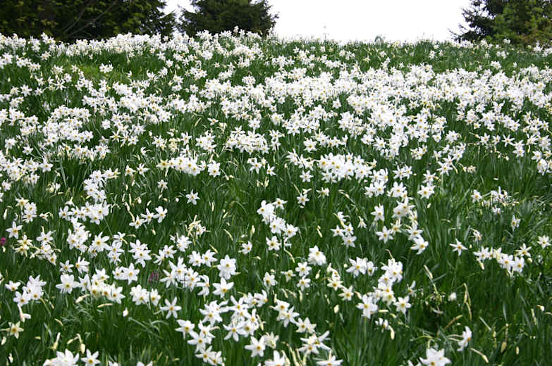 Im Mai und Juni ist die gesamte Wiese der Illitschalm von einem weißen Teppich aus Narzissen bedeckt. Ein Naturschauspiel!