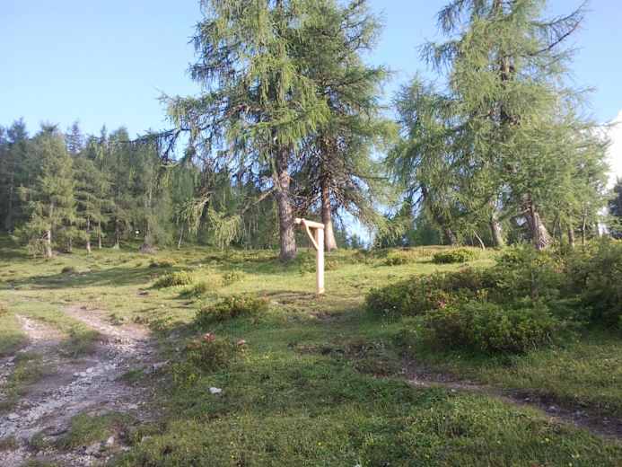 Auf dem Weg zur Lackenalm wird die Almstraße vier Mal gequert. Von der Alm aus wandert man bis auf einen Sattel. Von der Lacke führt ein Steig nach links. Nun folgt ein bewaldeter Rücken.