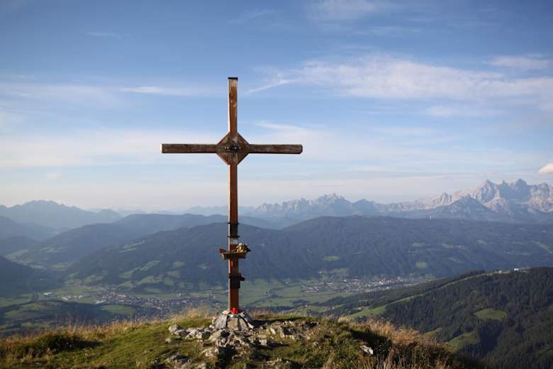 Aussichtsreiche Wanderung im Pongau im Salzburger Land. Von Altenmarkt geht es über die Lackenalm (1.632 m) zum grünen Horn. Vom Gipfel des Lackenkogels (2.051 m), der würdevoll über den Altenmarkter Becken thront, genießt man einen wunderbaren Panoramablick auf die Gipfel der Niederen Tauern, das Dachsteinmassivs und die Berchtesgadener Alpen.