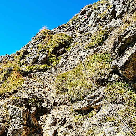 Der letzte Wegabschnitt auf den Gipfel des Großen Zunig ist teilweise seilversichert. Foto: Gottfried Roelcke