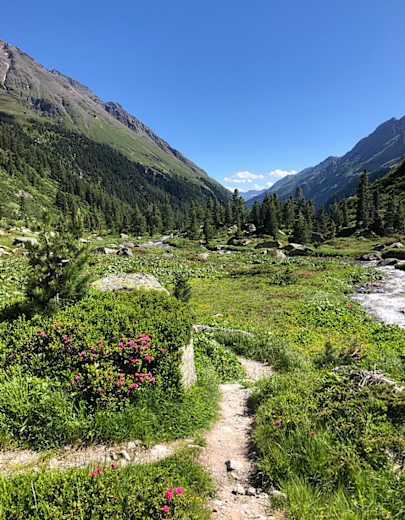 Der leicht zu bewältigende Geschichte(n)weg mit Start in Kals ist ja eigentlich ein „Hörweg“, denn in sogenannten Hörbäumen erzählen Stimmen von Sennerinnen, Bergbauern, Bergführern, Hüttenwirten und anderen kundigen Kalsern vom Leben im Osttiroler Almtal. Es sind Geschichten, die man sonst nur erfährt wenn man die Erzähler persönlich kennt – spannende, lustige, aber auch erschütternde Begebenheiten aus vielen Jahrzehnten. Höhepunkt ist sicher die spektakuläre Aussichtskanzel mitten in der Dabaklamm (Granatspitzgruppe).