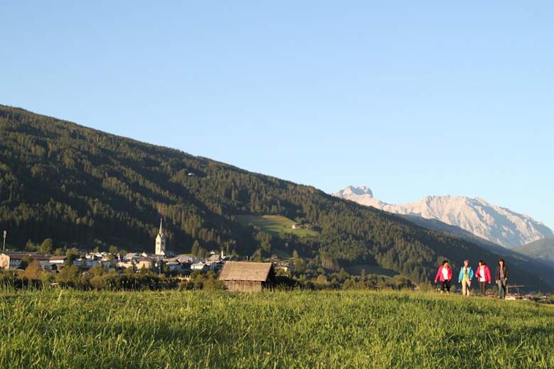 Leichte und kurze Wanderung im Pongau im Salzburger Land in den Radstädter Tauern. Die Wanderung führt vom Zentrum Radstadts entlang des Ennstalbodens in Richtung Altenmarkt und wieder zurück zum Ausgangspunkt. Dieser Weg ist gut mit dem Kinderwagen zu gehen, daher ist die Tour ideal für Familien geeignet.