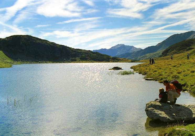 Farbenfrohe Wanderung im Pongau im Salzburger Land. Bei dieser Tour taucht man ein in die bunte Blumenwelt der Radstädter Tauern. Von der Vögeialm (1.356 m) geht es vorbei an kleinen Seen, rauschenden Bächen, prächtig blühenden Blumen und Pflanzen und duftenden Alpenrosenfeldern entlang des Oberhüttensee zur Oberhütte (1.860 m). Nach einer gemütlichen Einkehr geht es am Oberhüttenbach entlang durch den Wald zur Vögeialm zurück.