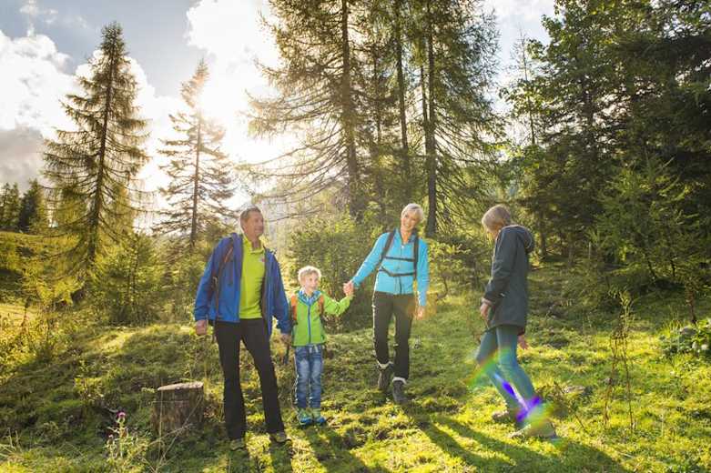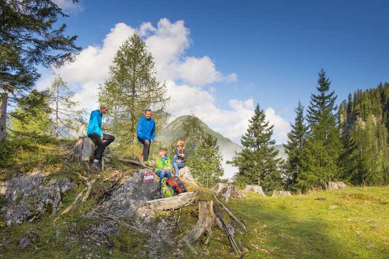 Zurück geht es zunächst zur Seitenalm (1.150 m), wo man gemütlich einkehren kann. Anschließend führt der Weg über einen Waldlehrpfad zurück zum Ausgangspunkt.