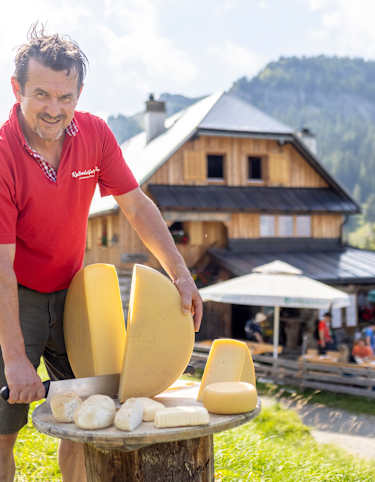 Die Kröllalm serviert frische Buttermilch, duftenden Schafskäse und saftigen Speck – alles aus der eigenen Wirtschaft. Man genießt die Produkte und lauscht dem Glockenläuten der Ziegen und Kühe.