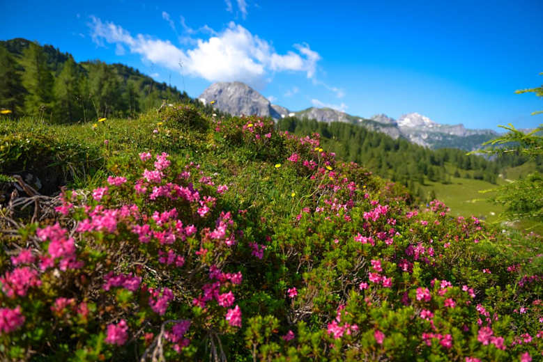 Nun warten latschenbewachsene Hänge und einige mit Schotter bedeckte recht anstrengende Steige, aber der Weg lohnt sich.