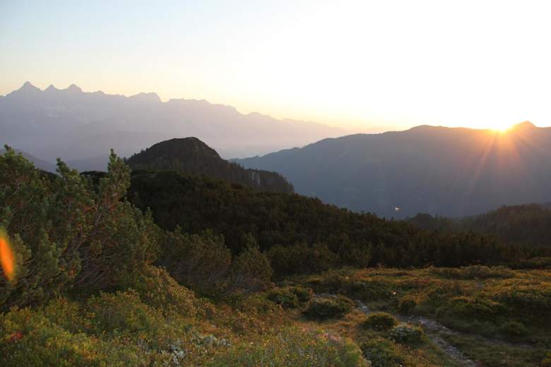 Der Steinwandweg verläuft rechts am Sattel vor dem Predigtstuhl hinunter. Er trifft auf den Weg, der von der Heimlscharte, vorbei an einem Forellenteich, ins Zentrum von Forstau führt.
