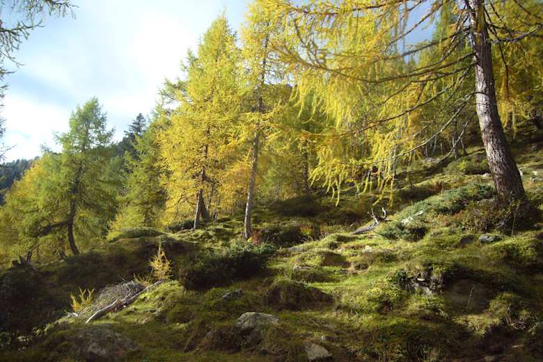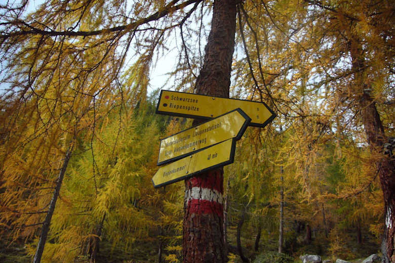 Von dort weiter über den Steig Nr. 15 zum Restlangarten auf 2.241 m, einem mit Steinen errichteten Viehunterstand, und von dort über Platten und Blöcken zum Schwarzsee.