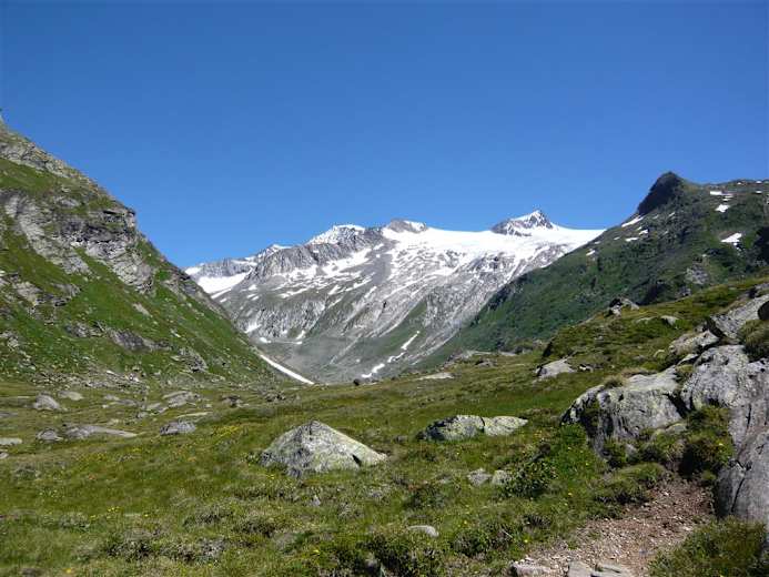 Der Abstieg von der Badener-Hütte erfolgt ins Innergschlöss und weiter talauswärts zum Matreier Tauernhaus.