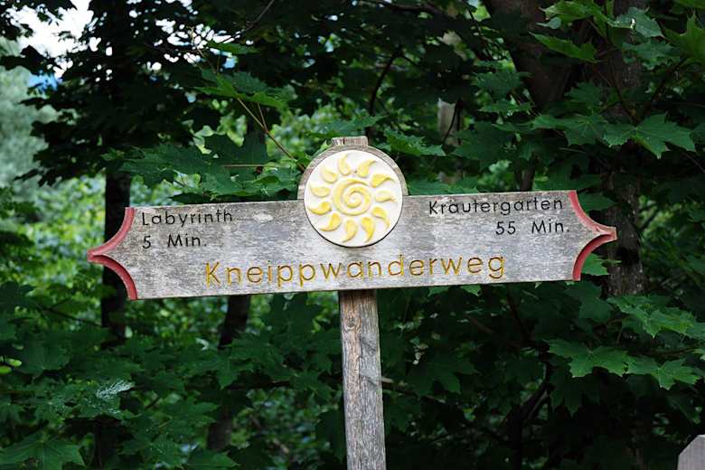 Die fünf Grudpfeiler des Pfarrers Kneipp werden hier vermittelt: Ein steinernes Labyrinth als Symbol für den Weg ins Innere zu sich selbst, ein Heilkräutergarten, ein Armbad und eine Wassertretanlage sowie die Bewegung beim Wandern.