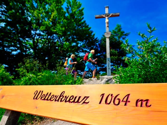 Diese mittelschwere Wanderung im Chiemgau in Bayern führt bis auf 1.084 m. Dabei steigt der Weg bis zum Gipfel des Wetterkreuzes teilweise stark an, doch die Mühe lohnt sich. Oben angekommen genießt man einen atemberaubenden Ausblick auf die Chiemgauer Alpen.