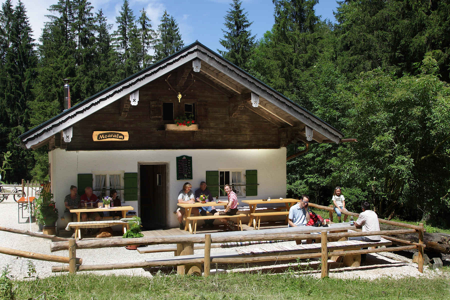 Almglück ganz ohne Strapazen. Sehr leichte, familienfreundliche Wanderung ausgehend von Inzell im Gebiet der Chiemgauer Alpen in Bayern über gemütliche 45 Höhenmeter auf die Moaralm. Die breite und nur mäßig ansteigende Forststraße zur gemütlichen Moaralm schafft jeder. Hervorragend auch an heißen Tagen geeignet, da der Weg durchwegs durch schattenspendenden Wald führt.