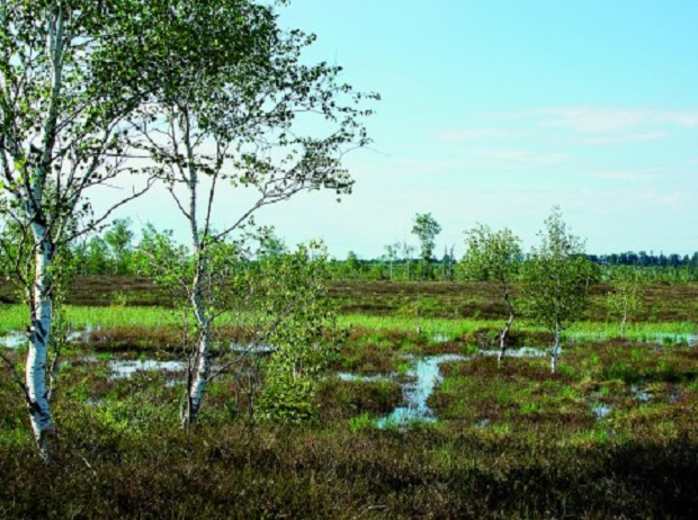 Es folgt ein einmalig schöner Pfad, welcher zwischen Birken durch das Moorgebiet führt. Am Wegweiser hält man sich links in Richtung Moorrundweg. Bald sieht man die Gleise der alten Mooreisenbahn. Diesen folgt man. Am Aussichtsturm geht es kurz geradeaus weiter bis man an der nächsten Kreuzung nach rechts geht. Ab hier folgt man dem Moorrundweg Weg Nr. 2 durch das Moor und den Wald.