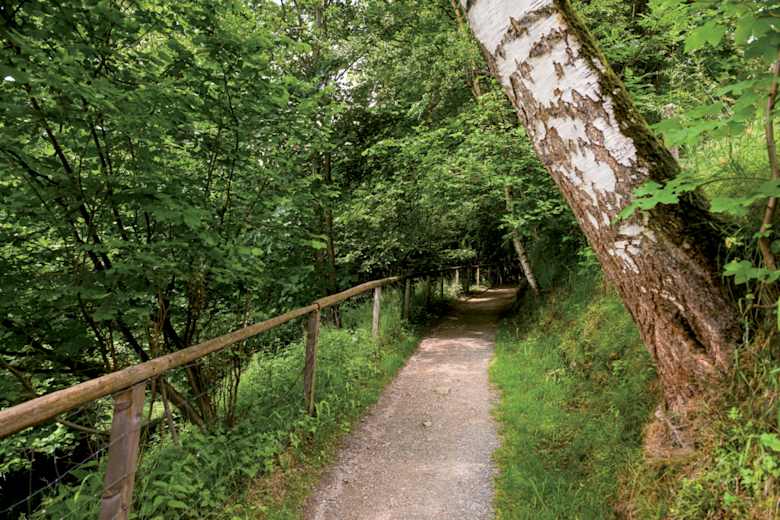 Der sonnige Panoramaweg liegt ca. 100 Hm über dem Talboden und garantiert stets eine schöne Aussicht.