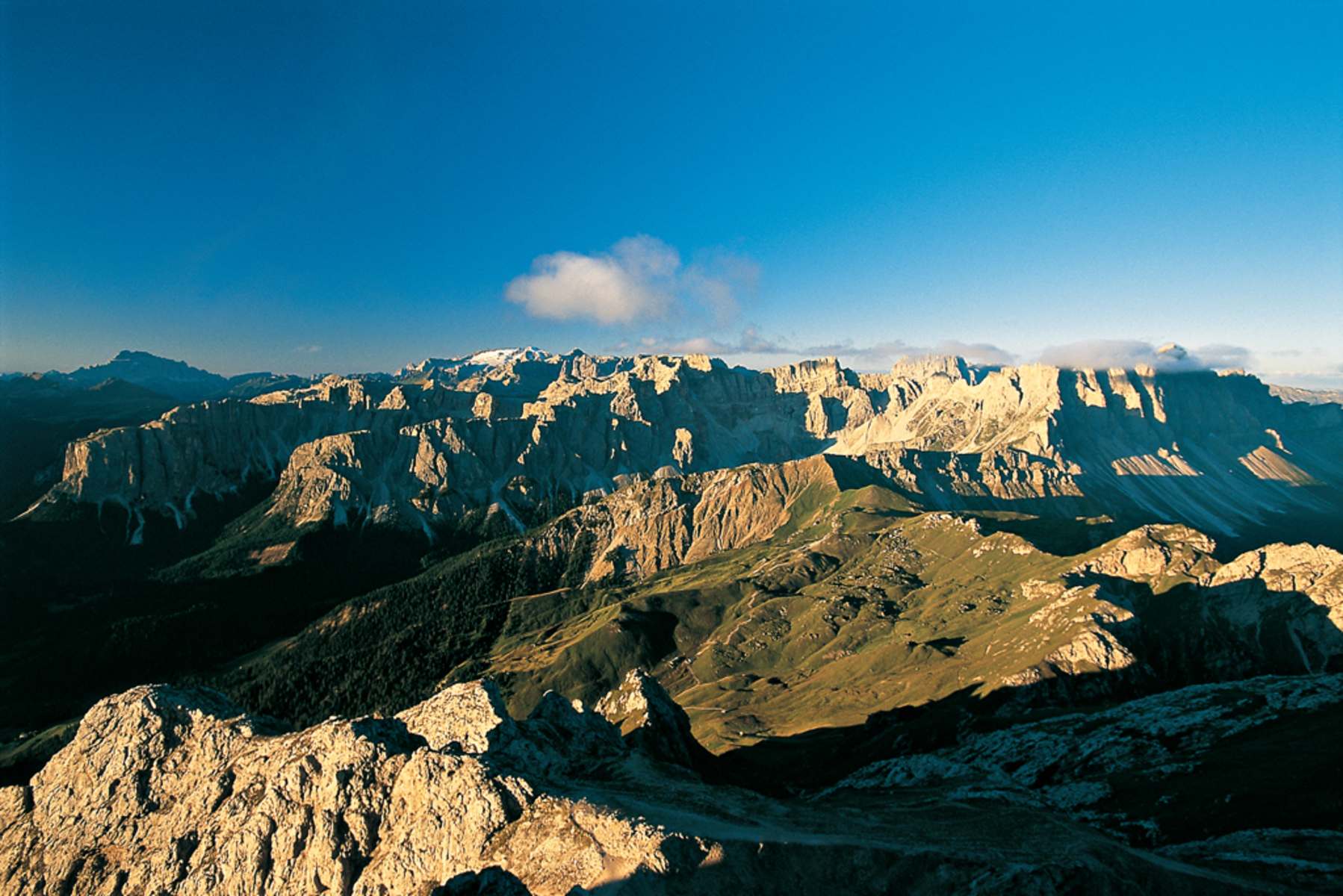 Genusstour hoch über Brixen in den Dolomiten: Zur magischen Zahl 3000 fehlen dem Peitlerkofel einige Höhenmeter. Trotzdem zählt er zu den ganz Großen der Dolomiten, er wirkt mächtiger und imposanter als manch richtiger Dreitausender, der aber von einer Reihe anderer hoher Gipfel umgeben ist. Der Peitlerkofel ist von Norden gesehen der erste „hohe“ Gipfel nach dem breiten Einschnitt des Pustertals. Von Osten betrachtet schirmt ihn das Gadertal von hohen Nachbarn ab, von Westen gar das Eisacktal. Lediglich im Süden erinnert der Sass Rigais in der Geislergruppe daran, dass es in den „bleichen Bergen“ noch höhere Gipfel gibt. Kurz, der Peitlerkofel ist ein mächtiger Felskoloss und aufgrund seiner Lage ein wunderbarer Aussichtsberg.
