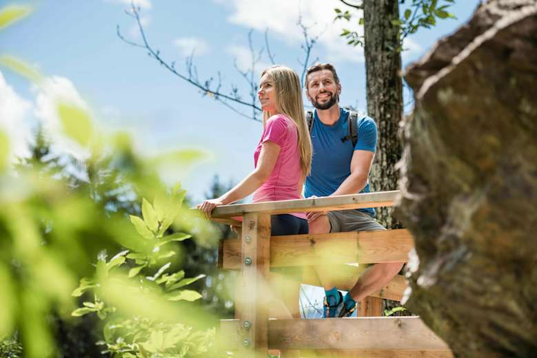Von der Waalerhütte verläuft der Weg durch die Natur- und Kulturlandschaft und bietet immer wieder freien Blick auf die gegenüberliegenden Bergbauernhöfe. Der Weg führt zum Hoferhof und über die kleine Straße zum Mountain Village Hasenegg.