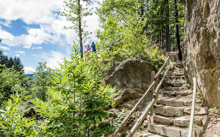 Die Wanderung über den Schenner Waalweg beginnt an der Masulschlucht und führt ins Naiftal.