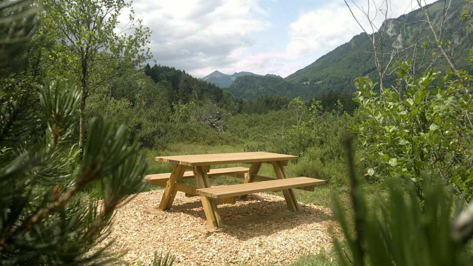 Ein Stück dieser zweistündigen Wanderung, die beinahe ohne Anstiege auskommt, folgt man der Tiroler Ache. Macht man einen kleinen Umweg, gelangt man zum „Barfußpark Unterwössen".