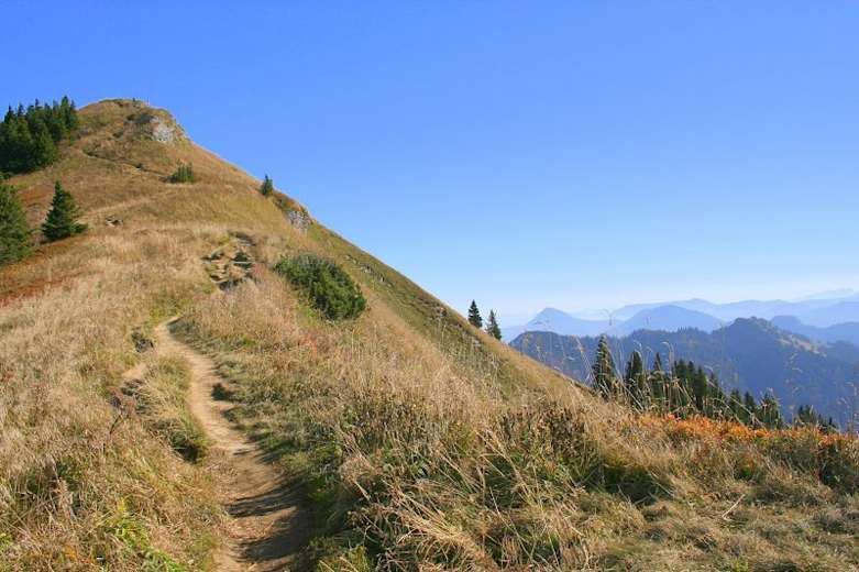 Nach der Gipfelrast geht man ein kurzes Stück auf demselben Weg zurück und stößt bald auf den Abzweig zur Staudacheralm auf der rechten Seite.