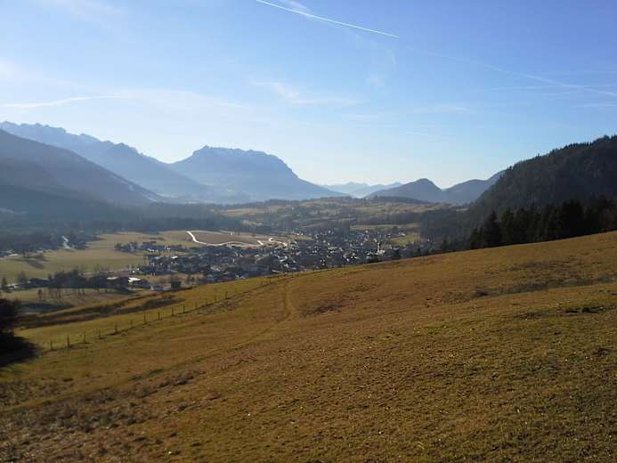Es gibt zwei Möglichkeiten: Über den Pötschbichl ins Tal oder aber über die Fahrstraße hinunter bis zu einer Abzweigung, dann rechts nach Entfelden und zurück zum Ausgangspunkt.