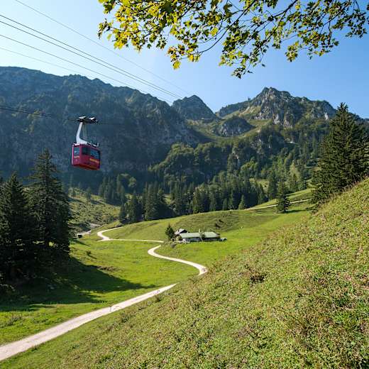 Einkehrmöglichkeiten gibt es auf der Bründling-Alm und auf dem Gipfelhaus des Hochfelln.