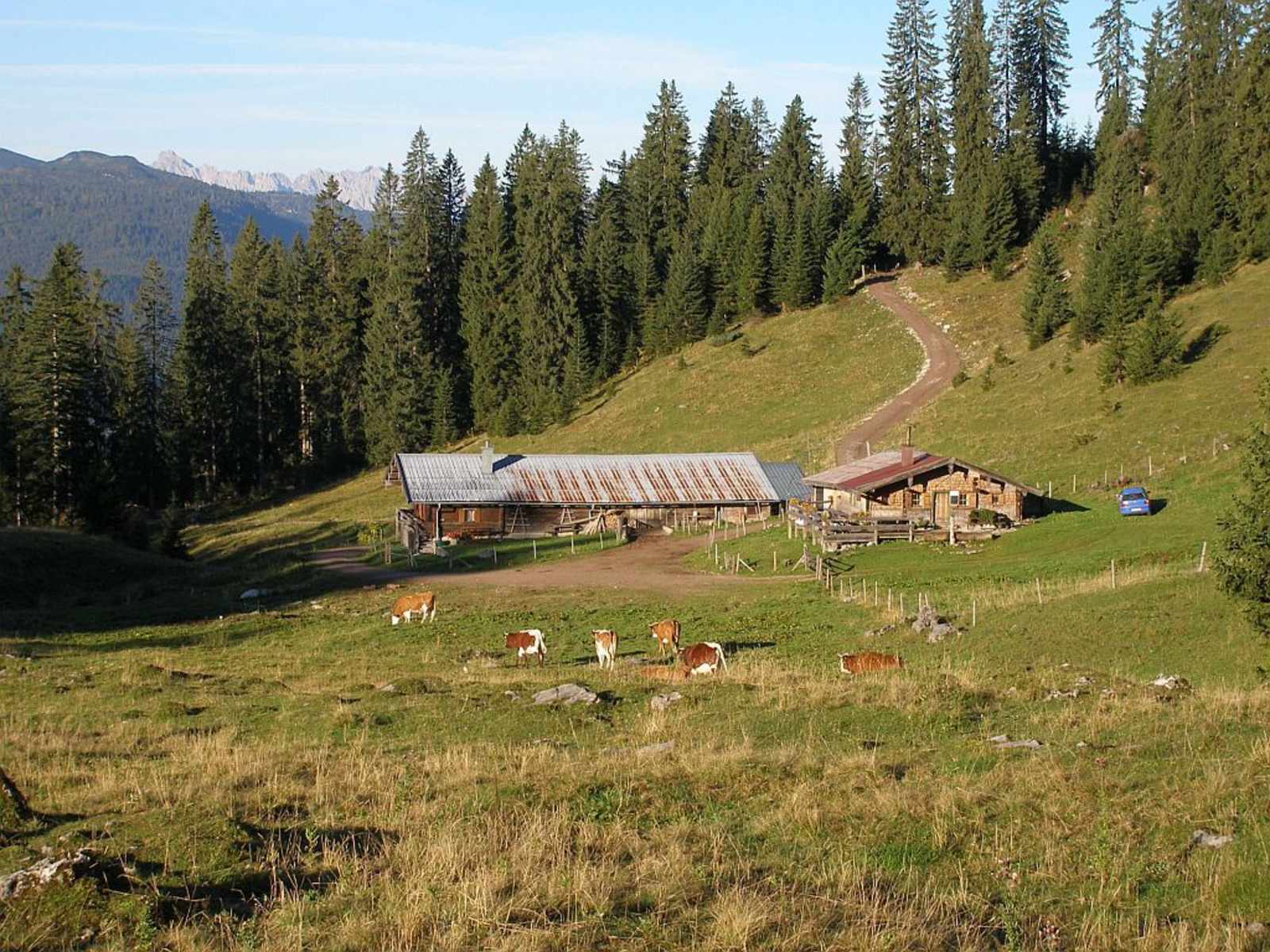Über den Weg 12 startet man in Richtung Dürrnbachalmen, vorbei an der Talstation der Dürrnbachhorn-Sesselbahn. Kurz vorher geht es dann nach rechts zur Finsterbachalm.