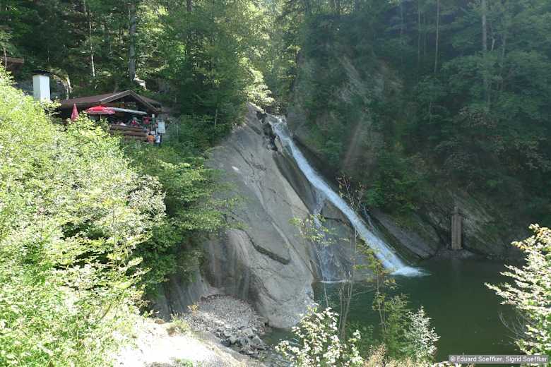 Klammwirt, 800 m, geöffnet Ende April bis Anfang Nov., kein Ruhetag, Brotzeiten, Eis, Tel. +49 8321 88988.