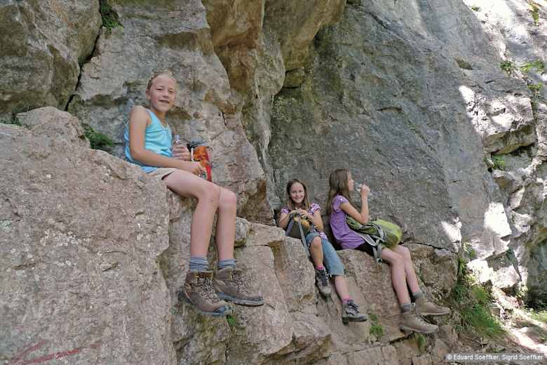 Rast oberhalb der Klamm auf einer natürlichen Felsstufe.Foto: Eduard Soeffker/Sigrid Soeffker/Bergverlag Rother