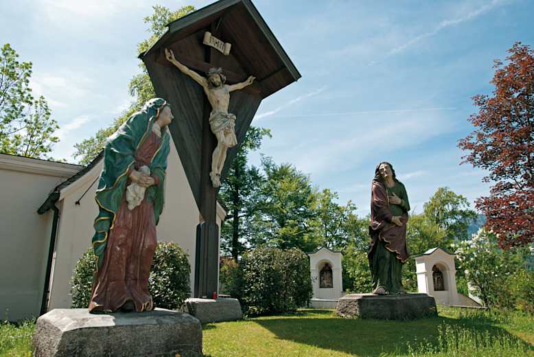 Der Kalvarienberg Lenggries umgibt uns mit einer anmutigen Stille. Hoch über Lenggries lädt ein runder Hof ein, sich der bis ins Jahr 1665 zurückreichenden überlebensgroßen Kreuzigungsgruppe mit Maria und Johannes vor dem Jesuskreuz ehrfürchtig zu nähern. Die gesamte Anlage wurde 1694 errichtet und stellt einen der ältesten Kalvarienberge in Bayern dar. Die Heilig-Kreuz-Kapelle entstand 1726 mit Heiliger Stiege im Innenraum.