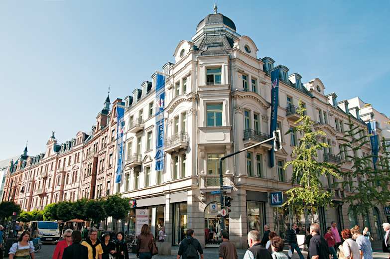 Wir gehen noch weiter bis zur Querstraße und werfen einen Blick auf die stattlichen Fassaden gegenüber in der Münchner Straße, die zum ehemaligen Neurenaissance-Häuserblock des Geschäftsmanns Gillitzer gehören. Von diesen Häusern ging im 20. Jahrhundert viel verloren, zuletzt wurde das Eckhaus (K+L Ruppert) original rekonstruiert.