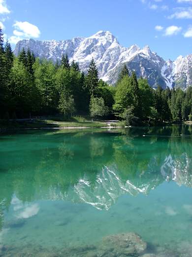 Die Laghi di Fusine zeigen sich je nach Sonnenstand in einzigartigen Farbfacetten. Ein leichter Rundweg führt um die Seen herum.