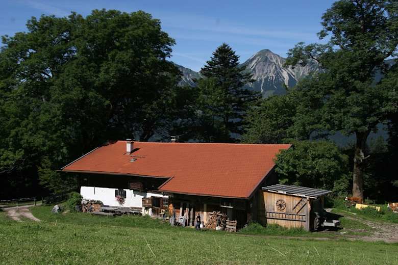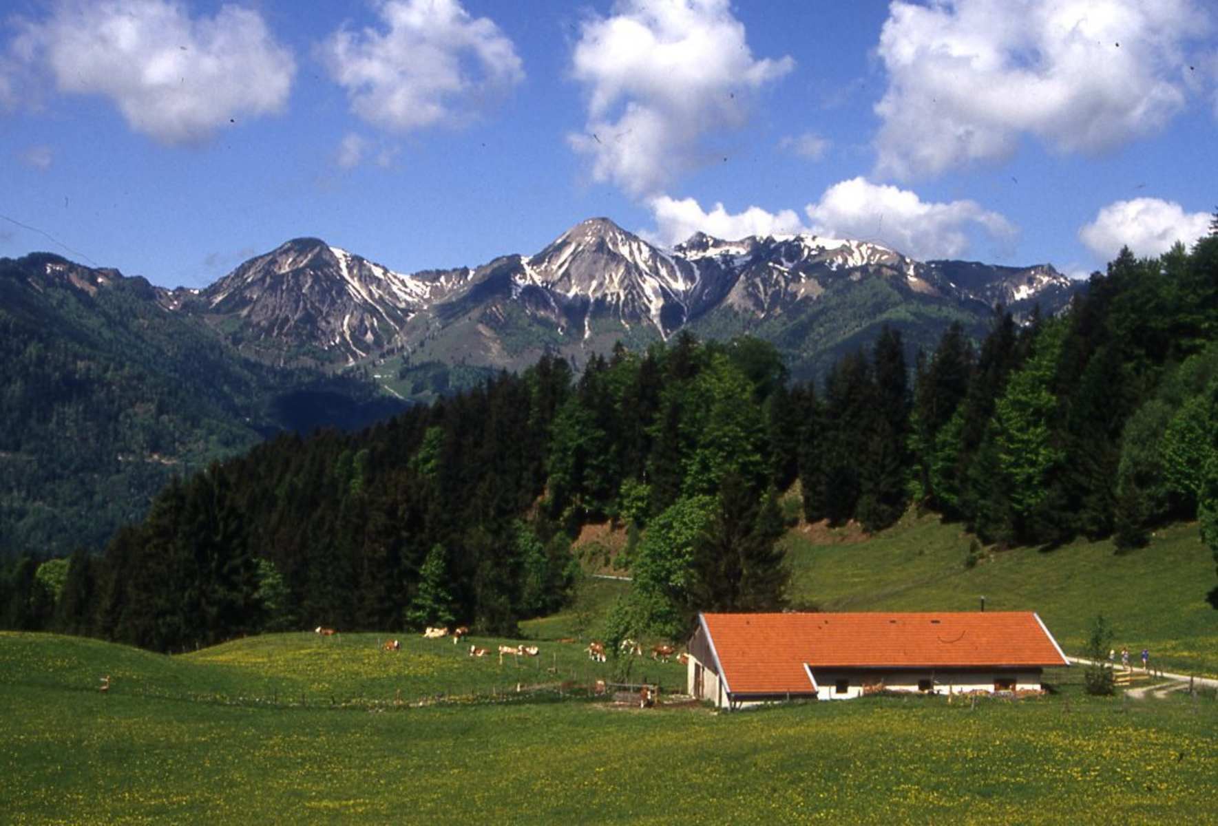 Sehr leichte, familienfreundliche Almwanderung über 544 Hm bei Schleching in den Chiemgauer Alpen in Bayern. Auf den Almen der Schlechinger Bauern (auf 1.027 m) genießt man herrliche Ausblicke auf die Chiemgauer Berge und das Achental.